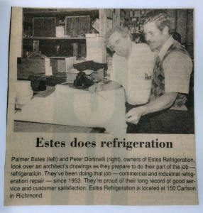 Estes Refrigeration, Inc. was started in 1953 by Peter Doninelli and Palmer Estes as a commercial refrigeration company specializing in commercial refrigeration service. Customers in the early days of Estes included; restaurants, grocery stores, food distributors, and convenience stores.